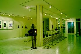 In the " white cube" of the Barg gallery, I made an eden garden of stone from these rock formations. In the entrance of the garden there was a long piece of canvas, a portrait of sky, all the way from the floor to the ceiling. It engulfed the jackal box, which functioned as a door to perception. This installation was cmposed of more than 60 fixed rock formations and 2 collaged wall pieces. At the same time I exposed 30 pieces of collages in another wing of the gallery.